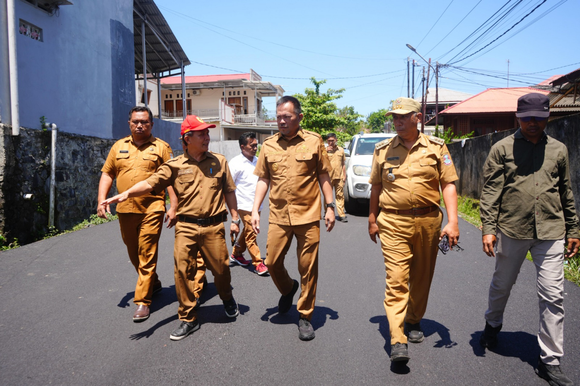 Dalam kunjungannya, Wakil Wali Kota secara langsung meninjau proses pembangunan dan memastikan kualitas proyek jalan di Kelurahan Tuminting Lingkungan 6 dan Sindulang 2.