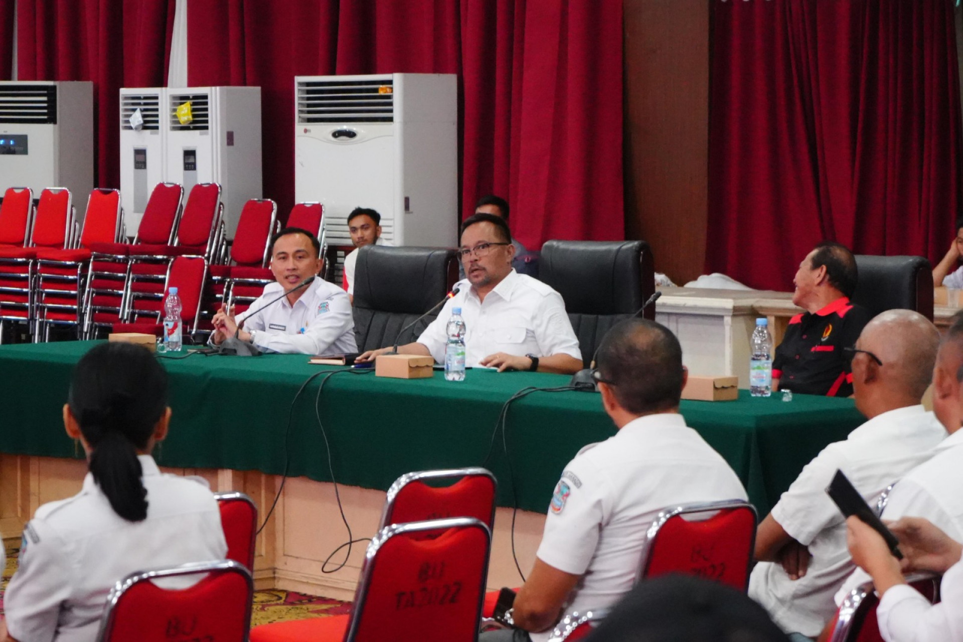 Wakil Wali Kota Manado Bapak dr. Richard Sualang, memimpin Rapat Panitia Persiapan Pekan Olahraga Provinsi ( Porprov ) ke-12 Tahun 2025, bertempat di ruang Aula Serbaguna Pemerintah Kota Manado pada hari Rabu, 08 Oktober 2025.