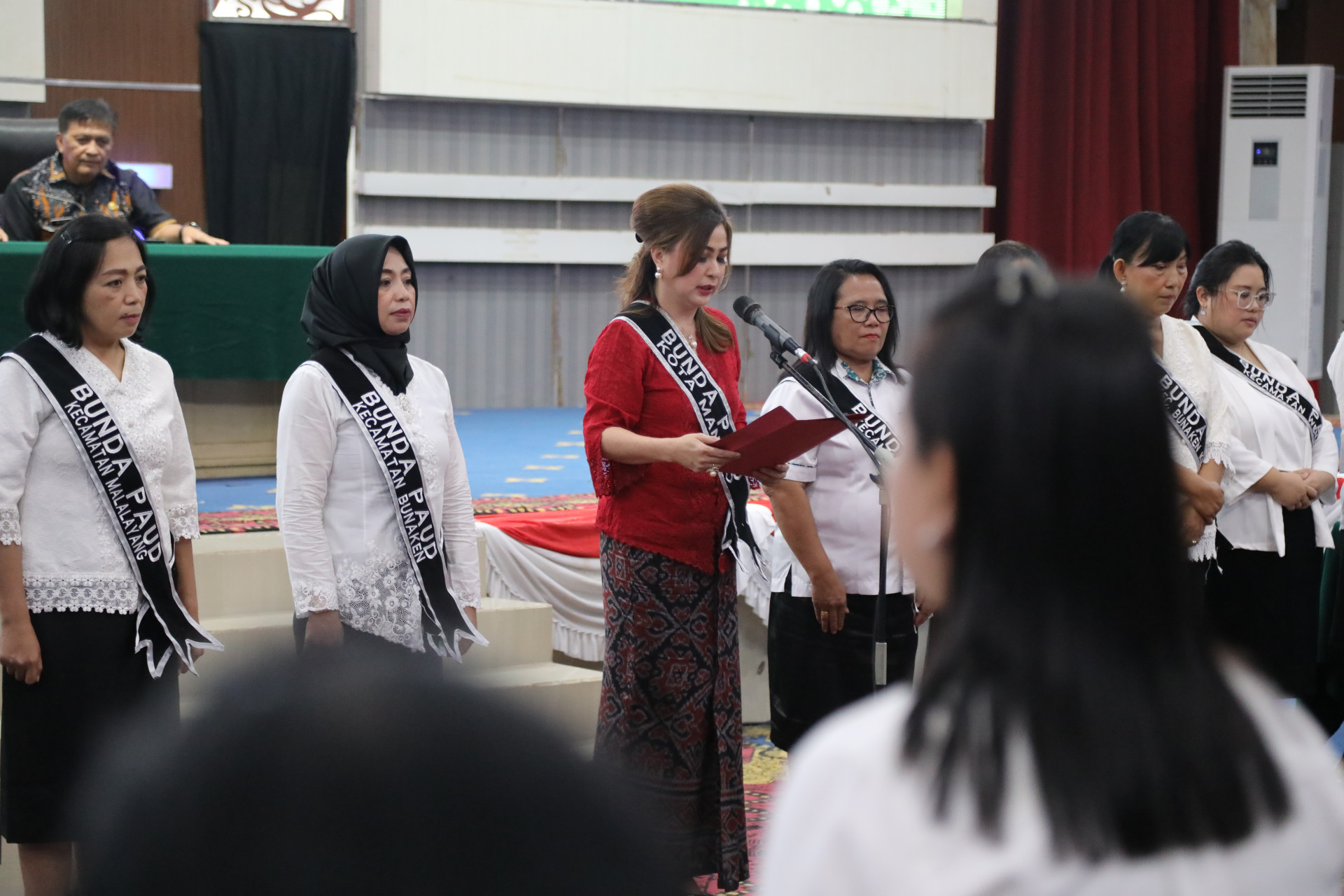 Pengukuhan dilakukan secara langsung oleh Ketua Tim Penggerak PKK Kota Manado yang juga merupakan Bunda PAUD Kota Manado, Ny. Irene Angouw-Pinontoan.