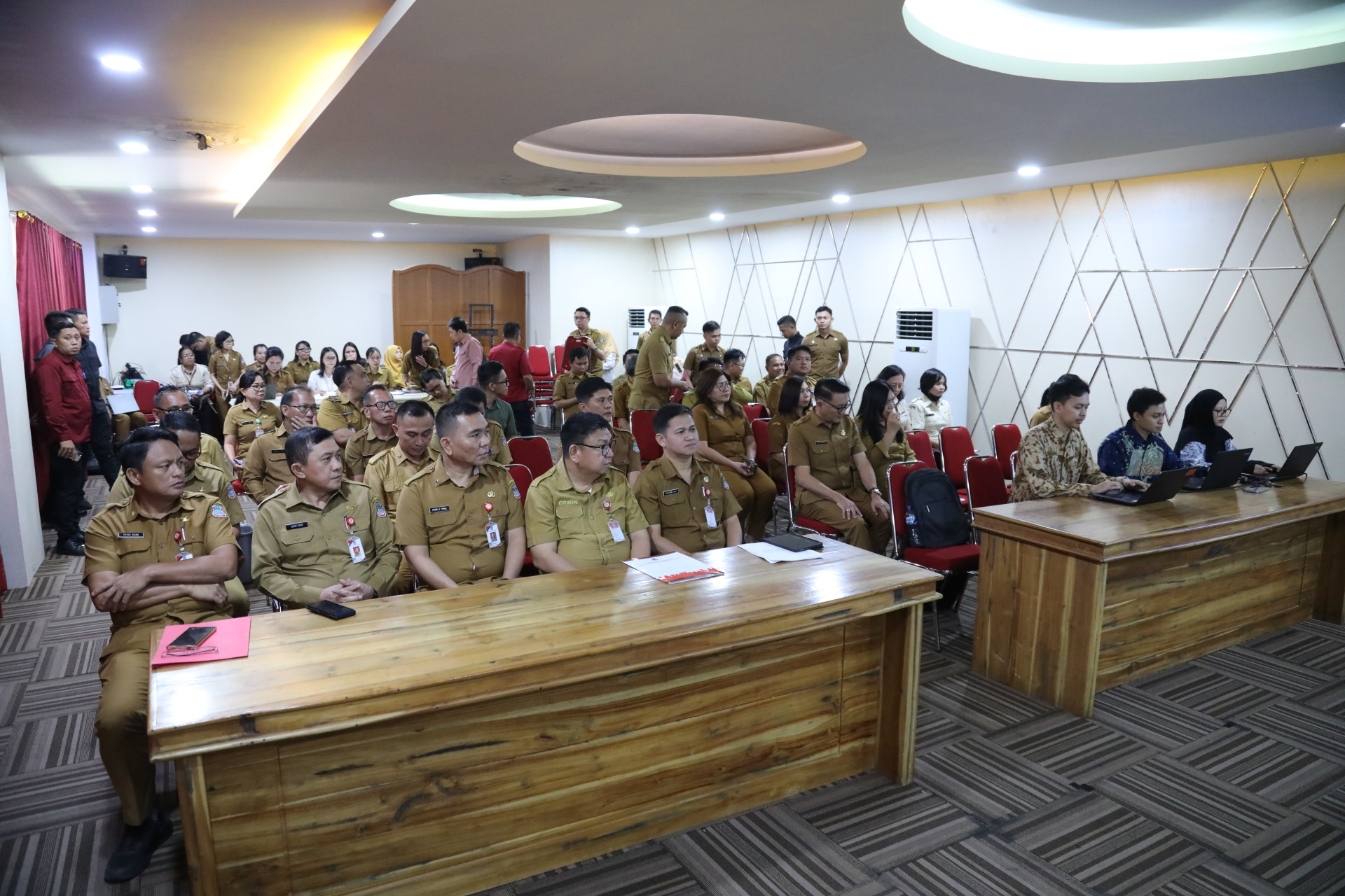 Turut hadir dalam kegiatan ini Sekretaris Daerah Kota Manado Bapak dr. Steaven Dandel, MPH, Inspektur Kota Manado Bapak Judhy Eduard, S.T., M.Ars., CGCAE., CGRE., Tim IV KPK RI, para Kepala SKPD, Camat, serta undangan lainnya.